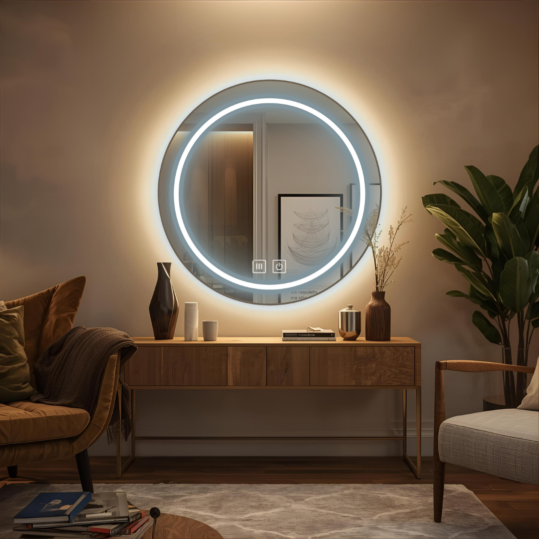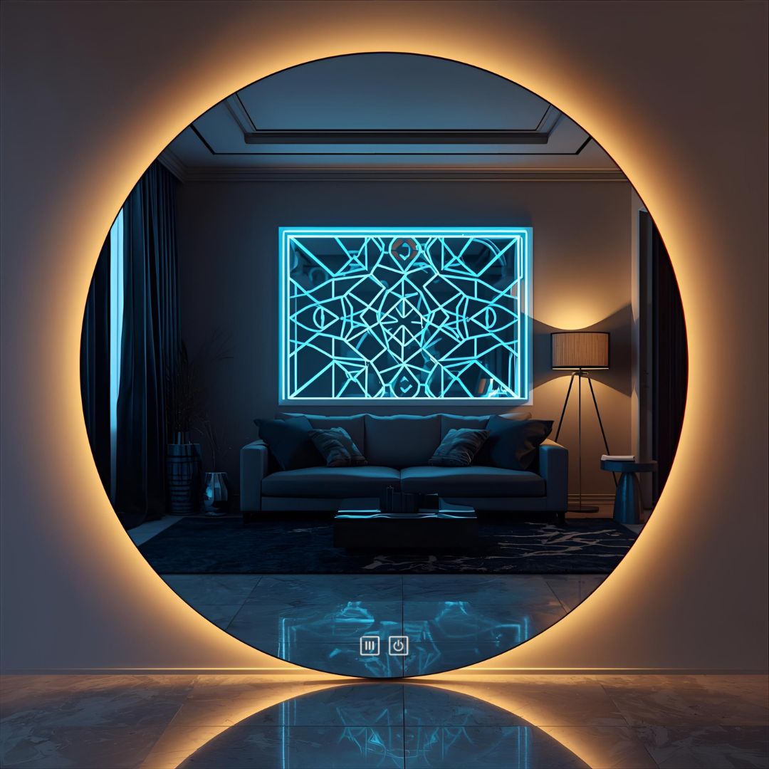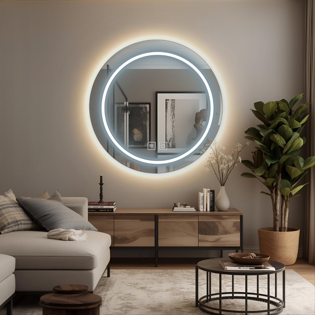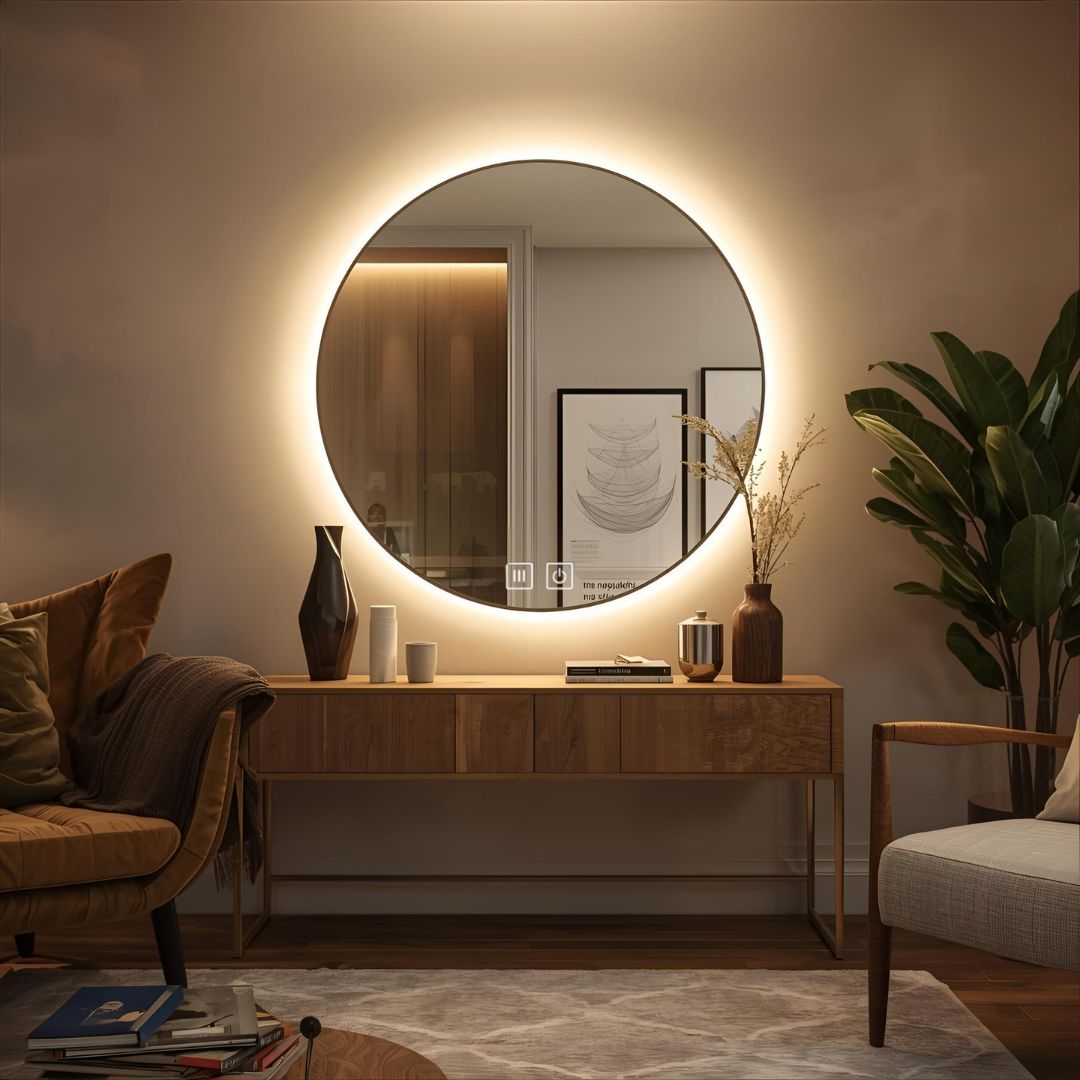 Okrągła konstrukcja bez ramy nadaje lustru nowoczesny i minimalistyczny wygląd, który doskonale wpisuje się w różne wnętrza.