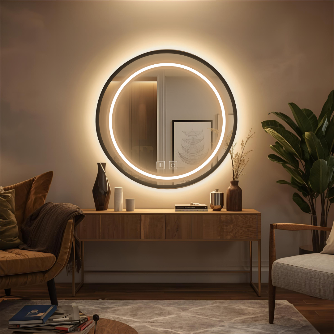 Okrągła konstrukcja bez ramy nadaje lustru nowoczesny i minimalistyczny wygląd, który doskonale wpisuje się w różne wnętrza.
