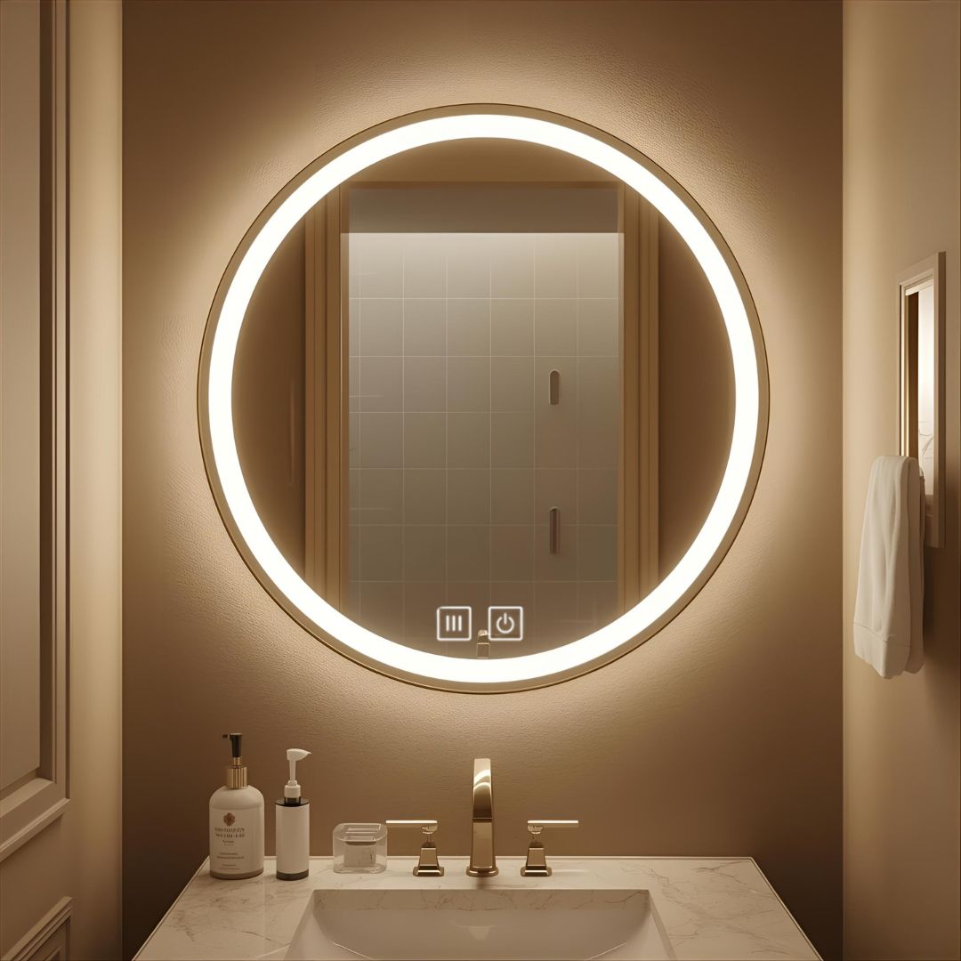Pojedyncze Naciśnięcie: Delikatne naciśnięcie przycisku aktywuje lub dezaktywuje oświetlenie lustra. Służy także do zmiany barwy światła. . Kiedy lustro jest włączone, przycisk świeci się, ułatwiając jego zlokalizowanie.