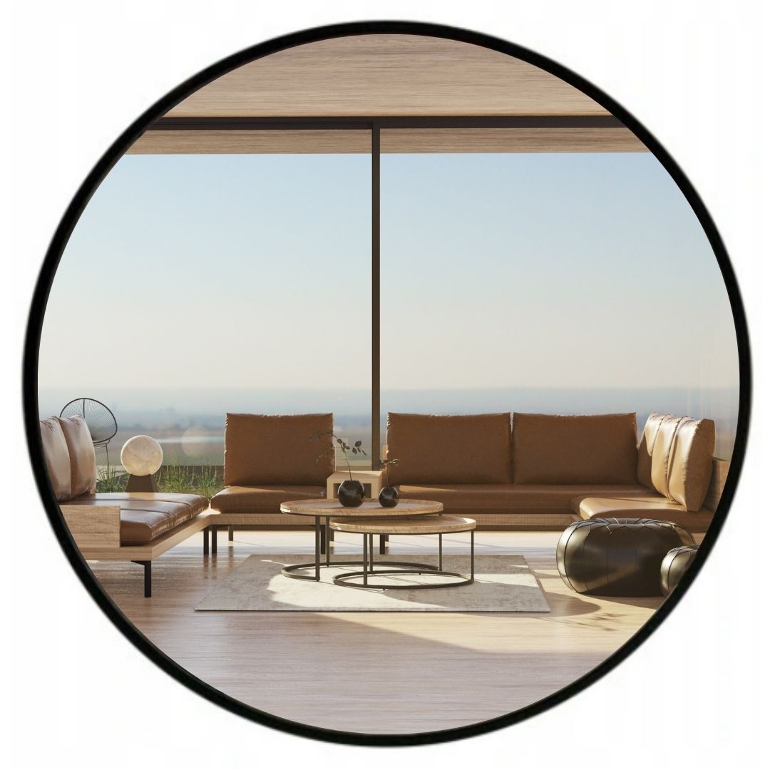 Lustro okrągłe w czarnej aluminiowej ramie