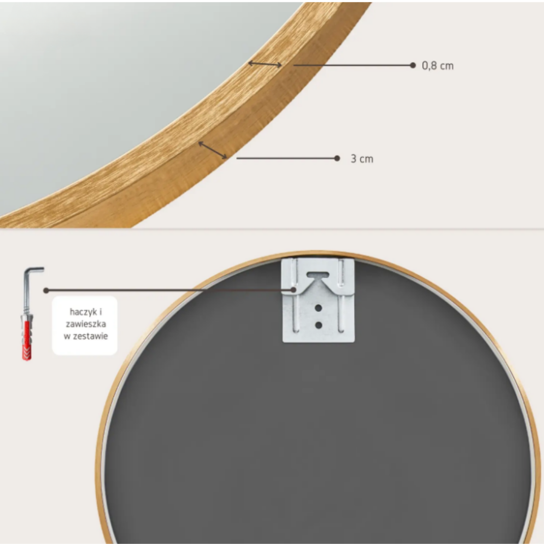Do każdego lustra dołączony jest zestaw montażowy (zawieszka i haczyk)